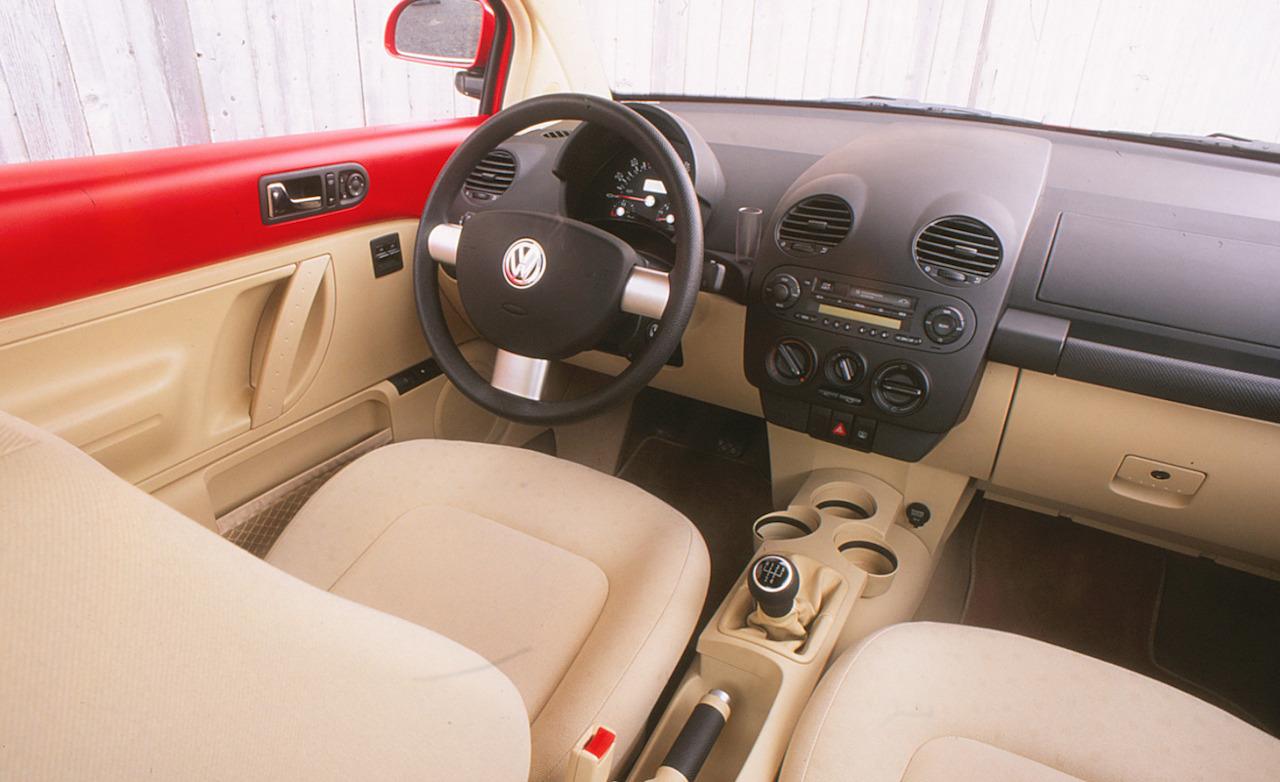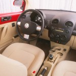 El auto es compacto, pero no es realmente pequeño en el sentido de su predecesor. La distancia entre ejes es de 98.9 pulgadas, el largo es de 161.1 pulgadas y el ancho de un 67.9 pulgadas. Un volumen interior total de 96.3 pies cúbicos proporciona un amplio espacio para la cabeza y la pierna. En virtud de que el motor se monta en el chasis transversal y la utilización de tracción delantera, ninguno de la cadena de tracción sobresale en el área de la cabina. Hay, sin embargo, una consola central entre los asientos delanteros individuales. Y mientras que la parte trasera es una pieza de tipo banco de uno, el auto está clasificado como un cuatro plazas. Sólo hay dos puertas, lo que significa que la entrada para el asiento trasero no es tan conveniente como delantero. Pero es más fácil por los asientos delanteros que surgen de forma automática hacia delante, arriba y fuera de su lugar cuando se levanta una palanca plegable. A diferencia del Beetle original, el baúl está en la parte de atrás, y con una tonelada de más espacio que el viejo modelo. Un total de 12 pies cúbicos está disponible, y que se puede ampliar mediante el uso del asiento trasero plegable.