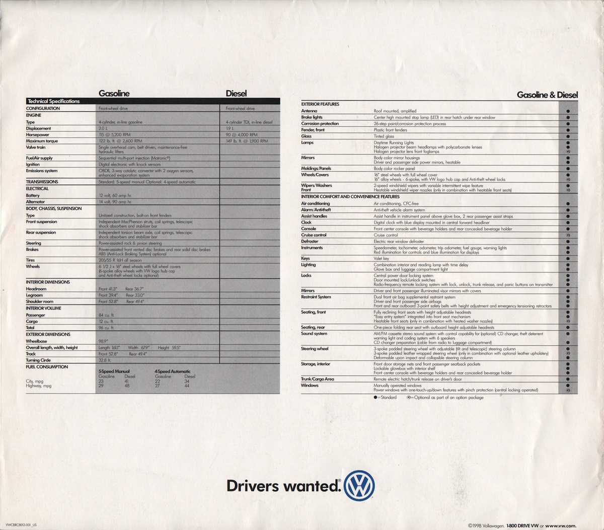 ¿Será el New Beetle 1998 el conquistador de los corazones de los conductores estadounidenses? El precio de venta sugerido del fabricante de $15,200 para el auto de gasolina y $16,475 para el diesel. Esto demuestra que algo bueno de una vida pasada puede volver aún mejor.