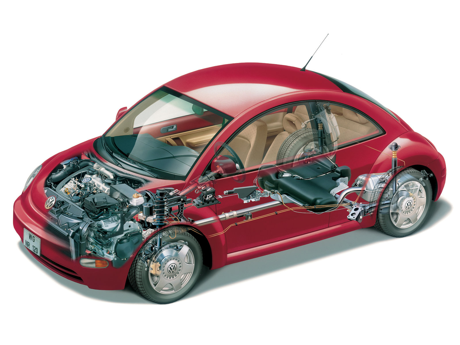 El motor del Beetle original era un (opuesto de cuatro cilindros) flat-4, refrigerado por aire que a 55 millas por hora sonaba como que iba 190. El nuevo Beetle ofrece una opción de dos motores que navegan a lo largo y sin molestias del viento. El estándar es un motor 2.0 litros (121 pulgadas cúbicas) de un solo árbol de levas que ha sido la columna vertebral de los motores VW utilizados en los autos de carreras, barcos, autos de carreras de arrastre y lo que sea. Cuenta con 115 caballos de fuerza y 122 libras-pie de torsión para propulsar el New Beetle a lo largo de una manera nunca alcanzado por su predecesor. El motor opcional es un diesel, de 1.9 litros (115.7 pulgadas cúbicas) que no genera tanta potencia como el motor de gasolina, pero lo supera en torque y en economía de combustible. La producción de potencia es de 90 caballos de fuerza, pero a 149 libras de torque. Utilizando una tecnología diesel avanzada, el 1.9 emite 20 por ciento menos de dióxido de carbono que un motor de gas comparable. Y no hay comparación en el consumo de combustible. En forma de cinco velocidades, el diesel obtiene 41 millas por galón en ciudad / 48 carretera comparado al 2.0 litros con 23/29. Con el automático, que es 34/44 al 22/27.