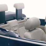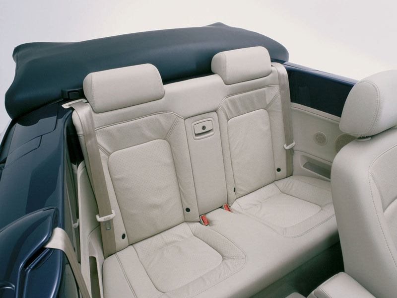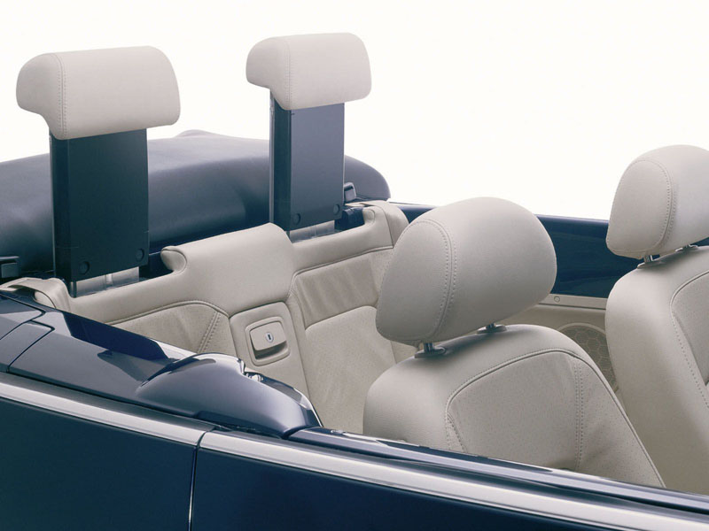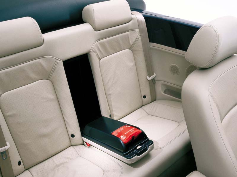 El sistema automático de protección en caso de vuelco se ha integrado armoniosamente en la silueta del Cabriolet abierta. El sistema se encuentra detrás del respaldo del asiento trasero. Un sensor de vuelco y caída determina el posible riesgo de vuelco del vehículo, y acciona el sistema de protección. En este caso, dos perfiles de soporte se disparan dentro de 0,25 segundos y asegurar el compartimiento de pasajeros junto con un marco del parabrisas reforzado.