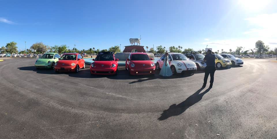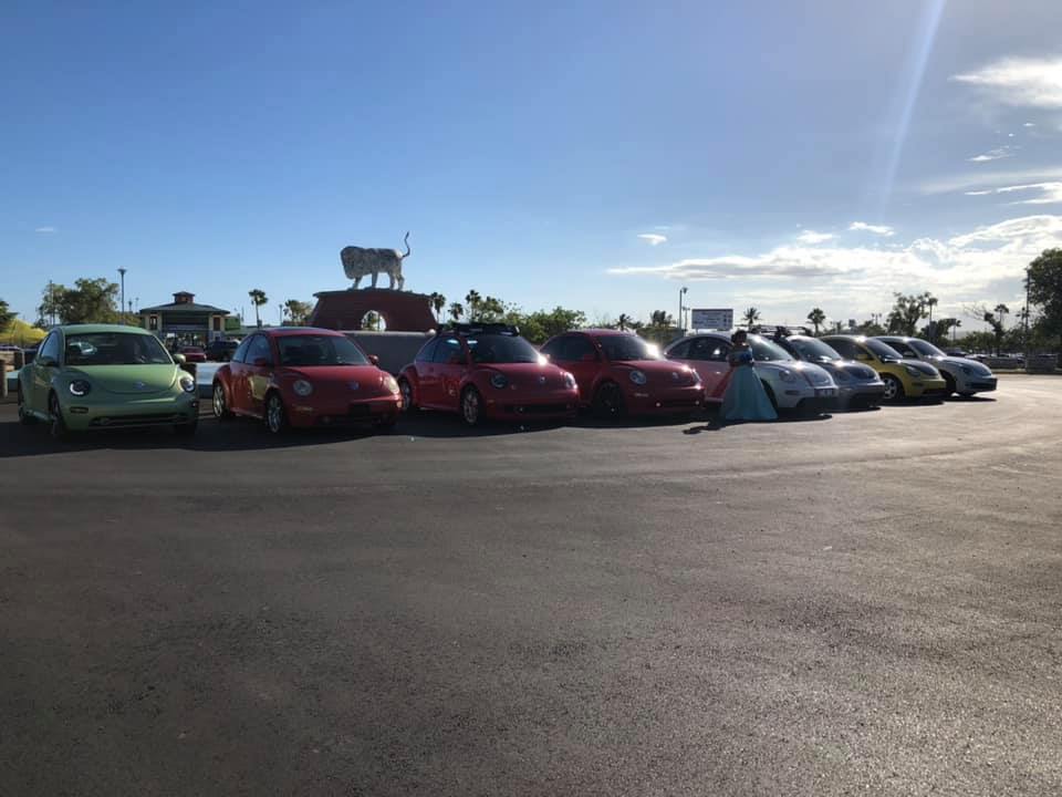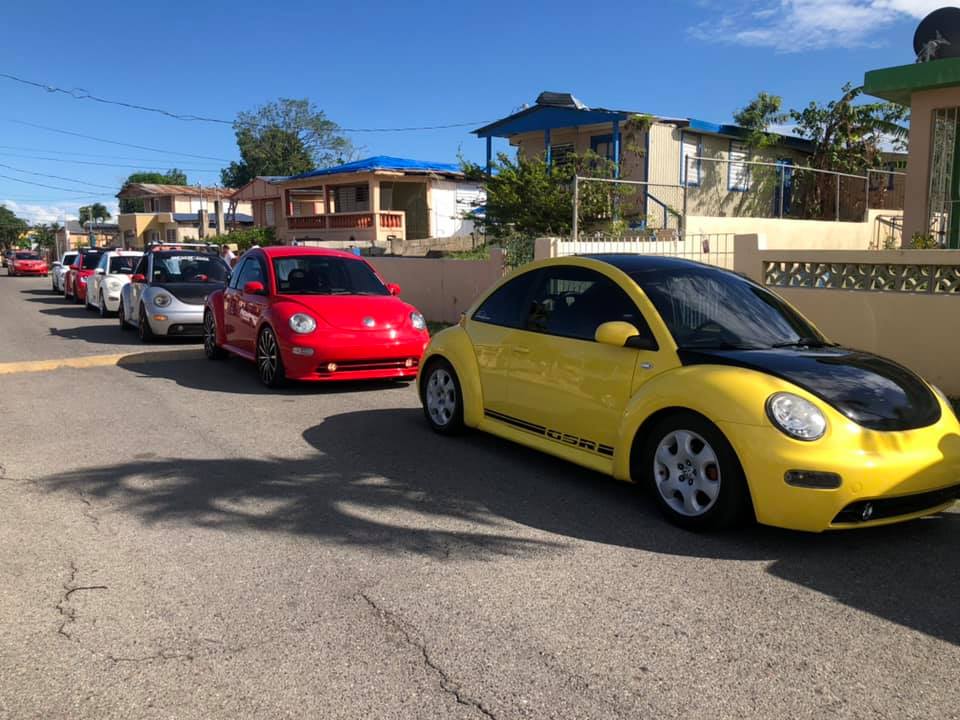 Nos dirigiamos hacia la Urbanización La Plena en Juana Díaz, específicamente en la Calle Bella Vista. Allí, ya con los Volkys que faltaban, llegamos con sirena encendida tomando por sorpresa a la Quinceañera. Para hacer la ruta ella escogió ir en el llamativo Volky Rojo de Antonio, escoltado por los otros 7 New Beetles. De allí nos fuimos en ruta por el expreso hacia La Guancha.
