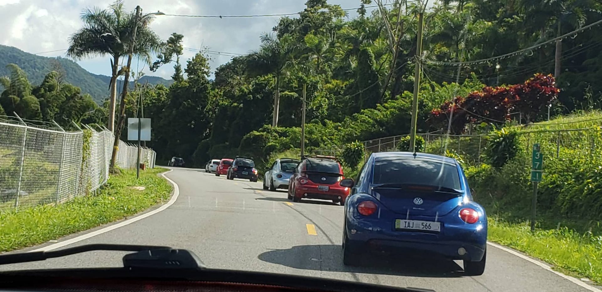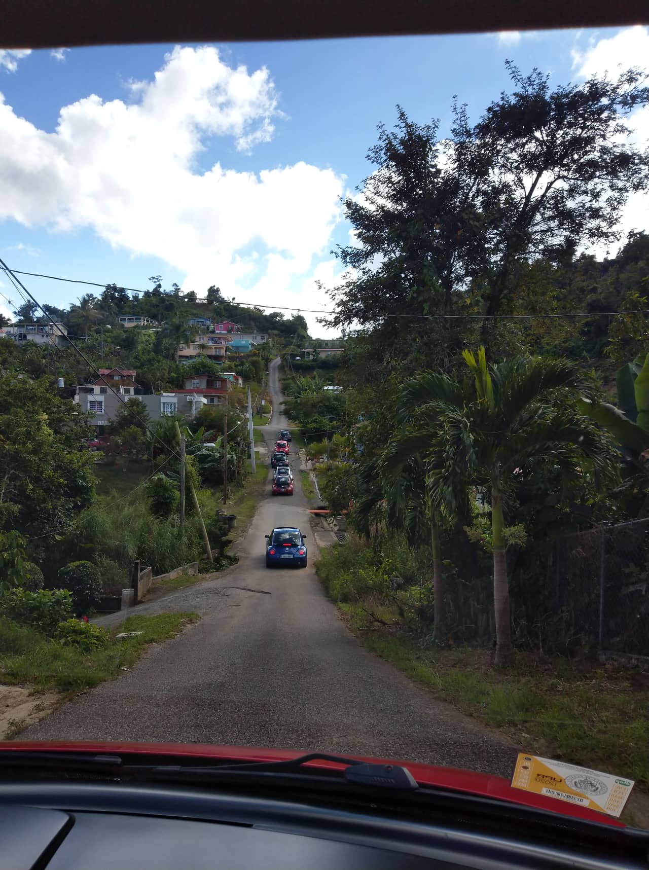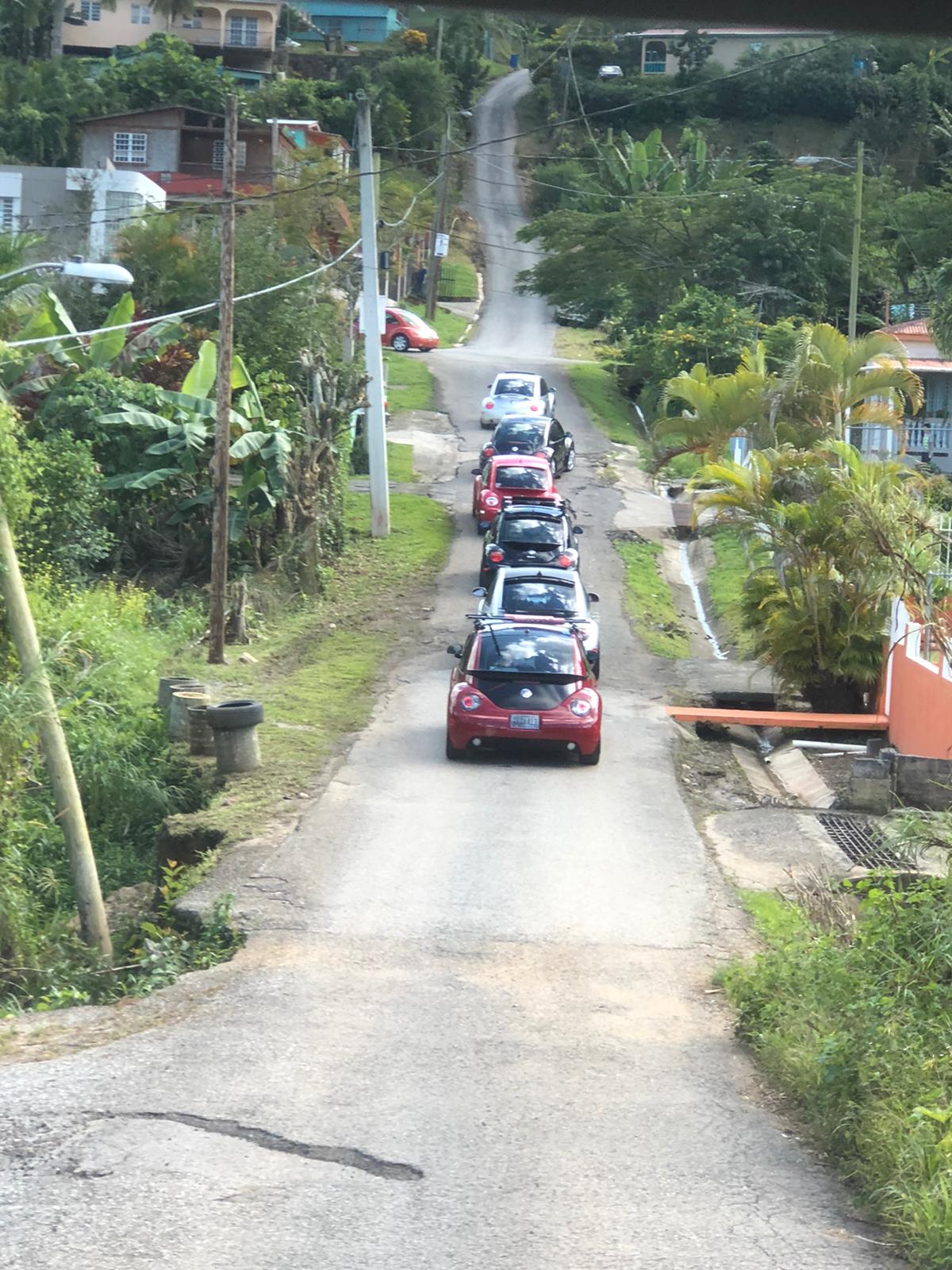 Comenzamos reuniéndonos los del área Oeste en el estacionamiento de Walmart de Baramaya para luego encontrarnos con el grupo de Ponce. Algunos allí mismo y otros en la carretera #10. Salimos alrededor de las 12 del mediodía con un clima espectacular dirigiéndonos a la montaña. Con una linda fila de 8 Volkys nos encontramos con Raymond y su Volky Limosina a pasos de la casa de la novia ya en Adjuntas. Llegamos a la casa de la novia Maribelis Rodriguez alrededor de la 1:30pm o poco antes. Allí se nos unió Abel de allí mismo de Adjuntas y José Cuevas completando una cantidad de 10 Volkys. Luego de la casa nos dirigimos con la novia junto a las damas de honor a la Iglesia El Faro en el mismo pueblo de Adjuntas.