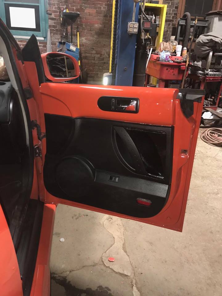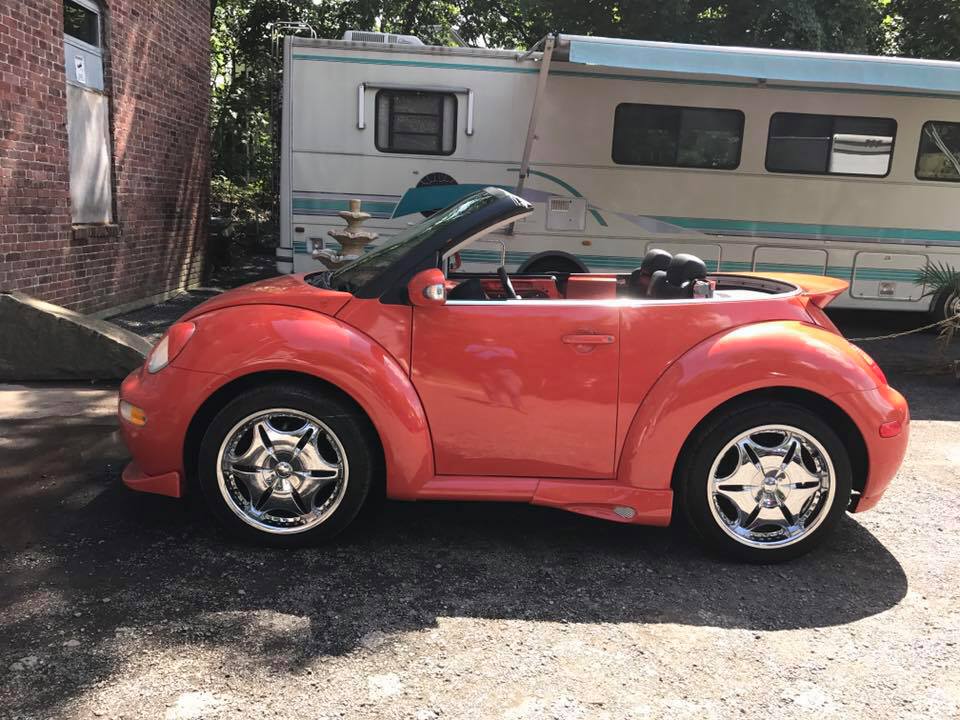¡No!, no se trata de un photoshop tampoco un error en la foto. Este es un New Beetle cortado para ser más pequeño. Realizado por su dueño Alberto y su hermano Juan R. Valentín en su taller Monchi Towing en Leominster, Massachusetts (USA). Luego de pensarlo mucho, ya que el auto se encontraba en buenas condiciones, Alberto decidió realizar este proyecto debido a que no existía un New Beetle modificado de esta manera. Entendemos que este es el primero en Puerto Rico y en el mundo. Fue cortado alrededor de unas 30 pulgadas. Las puertas también fueron modificadas incluyendo los paneles. Al ser pequeño se siente muy bien al manejarlo, ya ha corrido largas distancias en Estados Unidos y en Puerto Rico. Los únicos asientos que tiene son los traseros del carro original. Adicional se le realizaron algunas modificaciones como side skirts Caractere, front lip universal en el frente y rear lip, que en realidad es un front lip VW (Jetta o GTi), modificado para el bumper trasero, spoiler de baúl original y aros cromados.