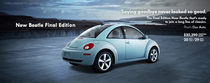 Esta última edición del New Beetle y del New Beetle Convertible está limitada únicamente a 1,500 unidades para cada una de las versiones. Esta última edición recibirá diversas mejoras y detalles que lo harán diferente y único a los demás. Mark Barnes, Director de Operaciones de Volkswagen of America, Inc, mencionó que desde su lanzamiento en 1998, el New Beetle ha tenido gran aceptación por parte de aquellos que aman un estilo totalmente único y vehículos con características inigualables. Además afirmó que las últimas ediciones combinan todos los elementos que mejor representan lo que la gente ama del New Beetle, y que han creado el legado del auto.